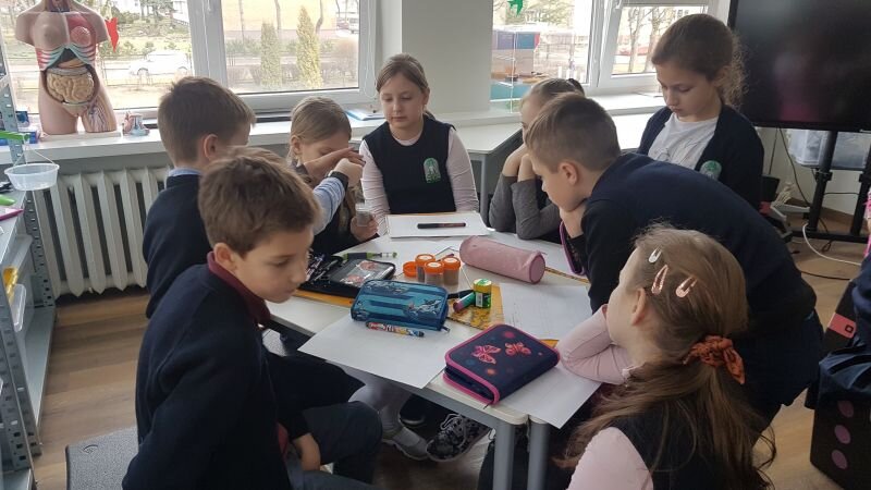 Trečiokų Pasaulio pažinimo pamokos laboratorijoje.