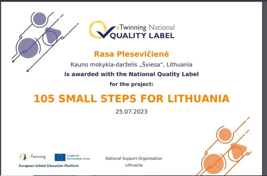 eTwinning projektas „Lietuvai -105 maži žingsneliai/ 105 sm...
