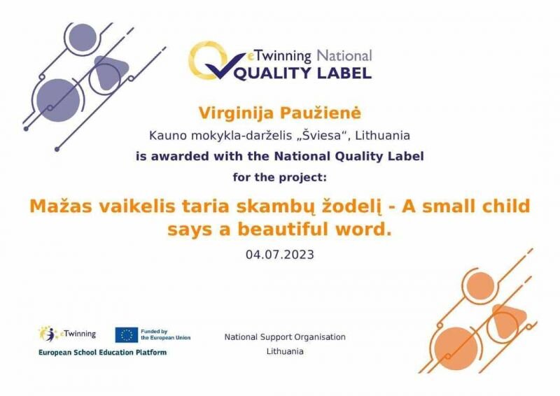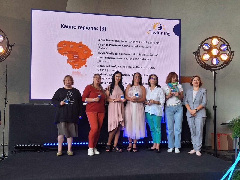 Apdovanojimų renginyje, mūsų mokykla jau trečią kartą gavo eTwinning mokyklos vardą 2023-2024 m.m! Džiaugiamės ir didžiuojamės įvertinimais. O tai reiškia, kad mokykla nuolat tobulėja aktyviai įgyvendindama ir propaguodama eTwinning vertybes ir pedagogiką, bei yra atskaitos taškas vietinei bendruomenei ir pavyzdys kitoms įstaigoms.