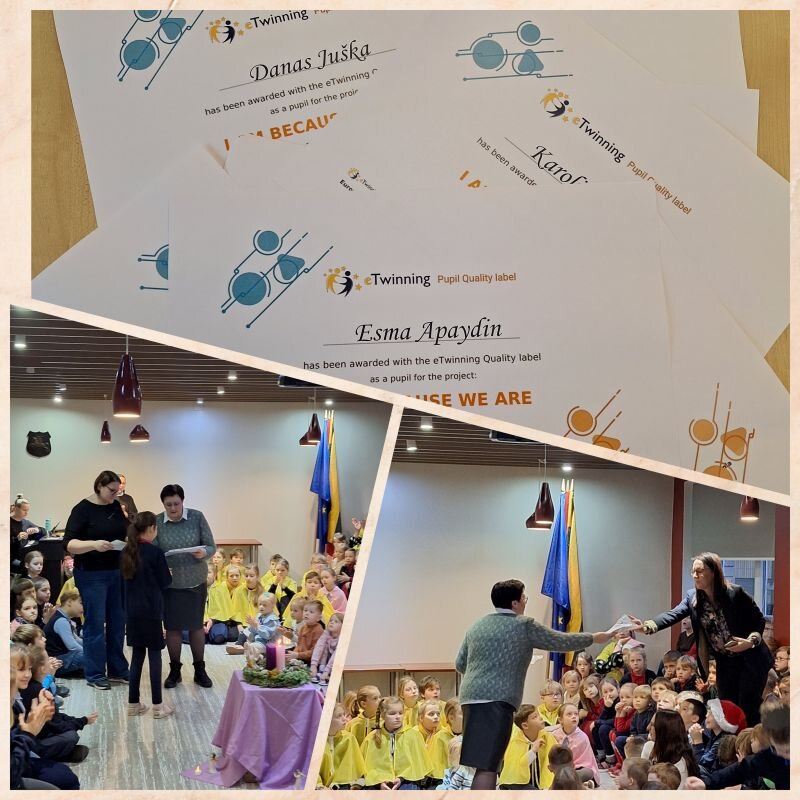 Už praėjusių metų projektus “Animals near us” ir “I am because You are” Europos Kokybės Ženkleliais apdovanoti Šviesuliukai (dabartiniai pirmokai) ir Gudručiai!