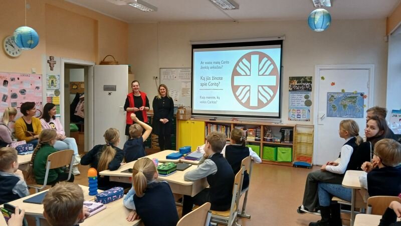 Pas Svajoklius svečiavosi Kauno Caritas atstovės Inga ir Kristina, kurios klasei pristatė Caritas organizacijos veiklą, kalbėjosi su vaikais apie gerumą, pagalbą vargstantiems bei savanorystę. Vaikai aktyviai dalyvavo pristatyme, klausė jiems rūpimų klausimų ir dalijosi savo mintimis.