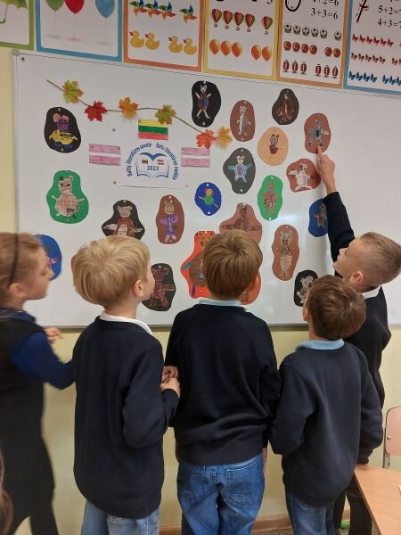 Mokytoja Inga su ugdytiniais skaitė Jurio Zvirgzdinio ,,Tobijo paistalai“ knygelę. Vaikai prisiminė lietuviškąjį Vytės Nemunėlio ,,Meškiuką Rudnosiuką“ ir palygino su latvių autoriaus aprašyto meškiuko istorijomis. Trečiokai pradžiugino savo kūrybingumu – pasitelkę įvairias technikas, taip pat gamtinę medžiagą sukūrė ne vieną meškiuką Tobiją. Mokytojos Raimondos ugdytiniai perskaitę ir aptarę latvių liaudies pasaką ,,Vilko popieriai“, pasigamino lėlytes ir panaudoję teatro kubą inscenizavo pasaką. Mokytojos Vidos ugdytinius pralinksmino ir nustebino meškiukai iš Imanto Zieduonio knygos ,,Meškiukų pasaka“. Po to pirmokai pasirinkę jiems labiausiai patikusį personažą meškiuką jį nupiešė, išsikirpo ir klasėje surengė parodėlę. Mokytoja Kristina su ugdytiniai mokėsi latvių vaišių dainą ,,Met, Laimina, Zelta Jostu“. Vaikai ne tik nupiešė iliustracijas šiai dainai, bet ir išmoko mokytojai pritariant kanklėmis ją padainuoti. Mokytoja Rasa kartu su anglų kalbos mokytoja Rūta pakvietė mokinius pasimokyti keleto latvių kalbos žodžių – vaikai aiškinosi jų prasmę, ieškojo panašumų, mokėsi tarti, smagiai skaičiavo nuo vieno iki dešimt.